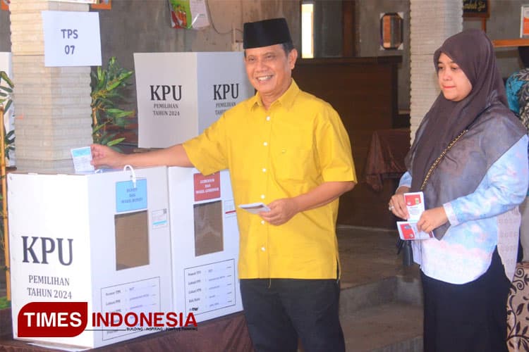 TIMES Indramayu/Calon Bupati Malang nomor urut 2, Gunawan HS, saat memberikan hak suara dalam pilkada 2024, di TPS 07, Desa Gondanglegi Wetan, Kabupaten Malang, Kamis 27/11/2024. (FOTO: Adhitya Hendra/TIMES Indonesia)