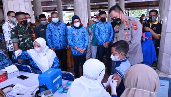 INDRAMAYUWalaupun masuk ke dalam PPKM Level 3, capaian vaksinasi anak di Kabupaten Indramayu hampir mencapai 100 persen, yakni sebanyak 99,13 persen. Meskipun begitu, Pembelajaran Jarak Jauh (PJJ) sudah mulai diterapkan.